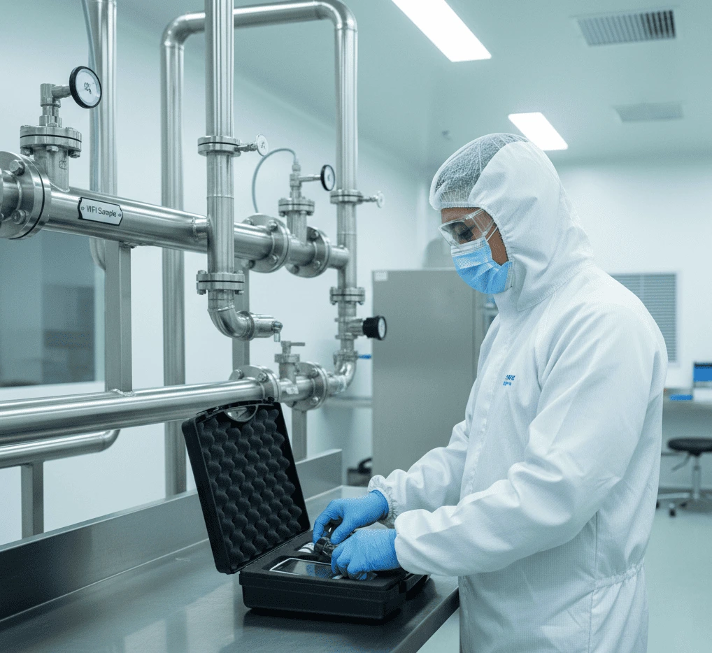 Farmasi & biotek: validasi air murni/DI/WFI, trending resistivitas, jejak audit.