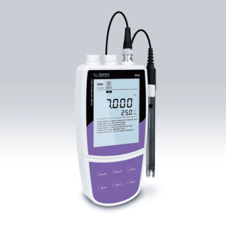 Bante320-CN Portable pH/Ion Meter adalah instrumen multiparameter portabel yang dirancang untuk pengukuran pH, mV (ORP), dan konsentrasi ion dengan presisi tinggi. Akurasi hingga ±0,5% F.S. menjadikannya solusi ideal untuk kendali kualitas proses, laboratorium penelitian, pengolahan air, serta pemantauan lapangan. Perangkat ini dilengkapi layar LCD ber-backlight sehingga hasil tetap terbaca jelas di berbagai kondisi pencahayaan, dan mendukung antarmuka USB untuk transfer data maupun suplai daya dari komputer/adaptor.