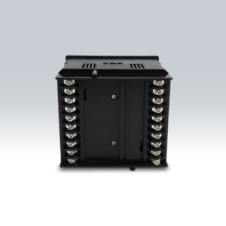 Desain panel 96 × 96 mm dengan kedalaman 75 mm yang cocok untuk standar cut-out panel kontrol.