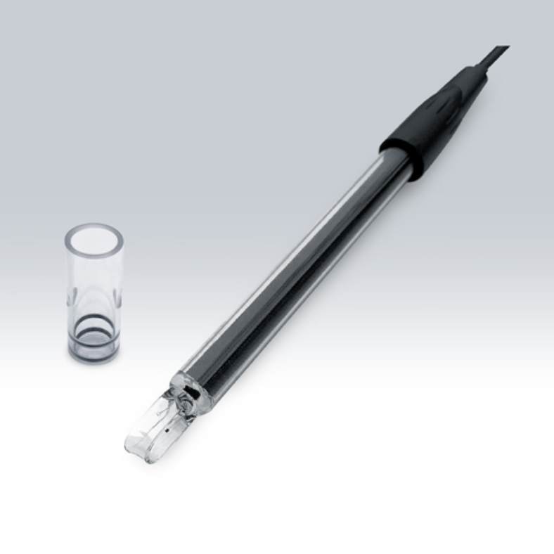Celupkan elektroda ke dalam sampel hingga bagian sensor terendam sepenuhnya, hindari gelembung udara di sekitar permukaan sensor.